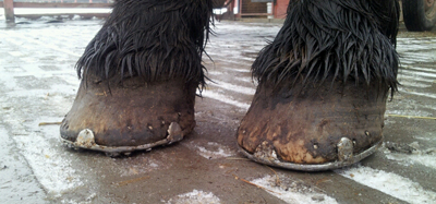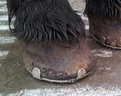 Az itt látható két fotót Barsi Zoltánnak köszönhetjük, aki nem tudott szó nélkül elmenni az eset mellett. Egy hidegvérű ló lábait láthatjuk, akit hidegen vasaltak háromkápás patkókkal. A kápák hegesztőgép segítségével kerültek fel a patkóra.