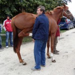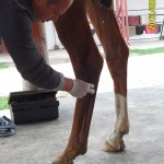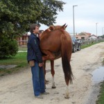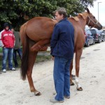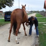 Az előadást követően dr. Kis János és dr. Molnár József egy 18 éves kisbéri ló, Sármány főszereplésével mutatták be a sántaságvizsgálat főbb lépéseit. Ismét láthattuk, mennyire fontos a ló állatorvosa és patkolókovácsa közötti rendszeres kommunikáció és együttműködés.