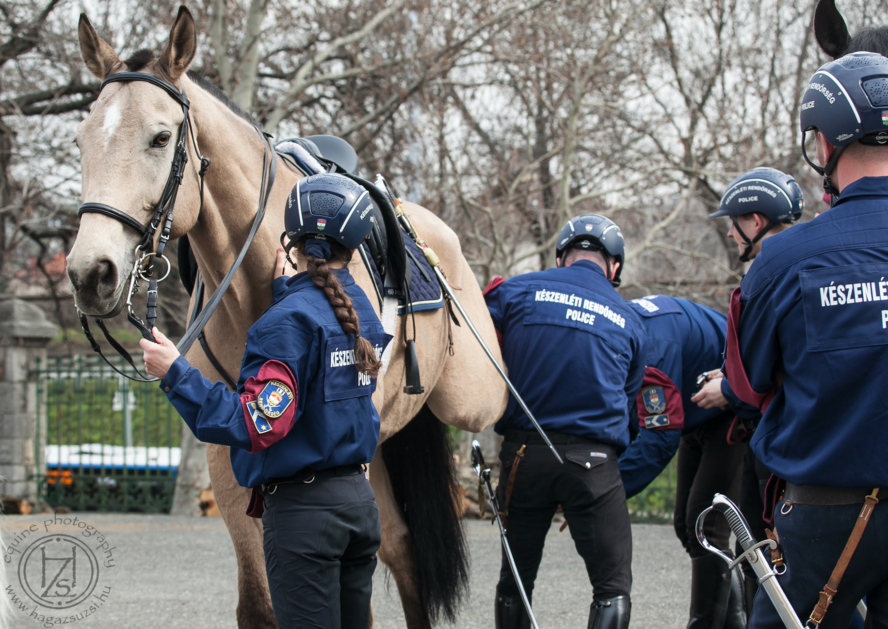 A különleges kiegészítőt először március 11-én próbálhatta ki két rendőrló, amikor a Nemzeti Lovas Díszegység 28 ló-lovas párosa és a 32. Nemzeti Honvéd Díszegység állománya közös ünnepi főpróbán vett részt a Petőfi Laktanyában.