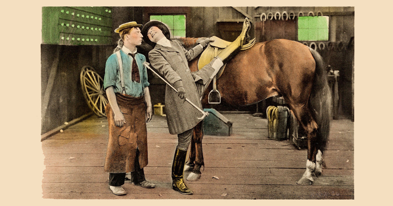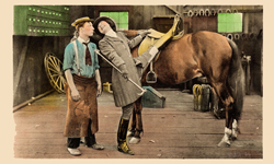 Végezetül következzék egy felvétel 1922-ből, ami kevésbé dokumentarista, sokkal inkább a paródia kategóriába illik bele, és kiválóan mutatja a némafilmes korszak báját. A patkolókovácsot Buster Keaton amerikai színész, filmproducer, forgatókönyvíró és filmrendező alakítja, akit a némafilmes korszakban készült filmjei tettek ismertté: