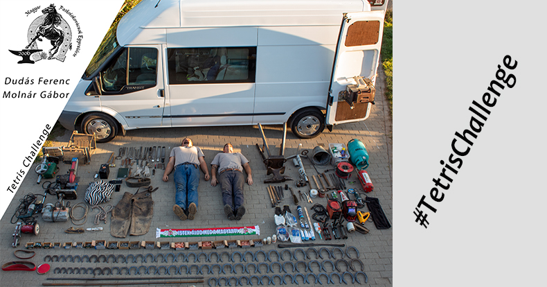 A #TetrisChallenge lényege, hogy valaki a mindennapos munkájához szükséges felszerelését szép, átlátható geometrikus alakzatban kirakja járműve mellé és maga is odafekszik egy fotó erejéig. Részt vett már a kihívásban világszerte rendőrökön, tűzoltókon, mentősökön, katonákon kívül számos szakma képviselője, most pedig itt a patkolókovács verzió!