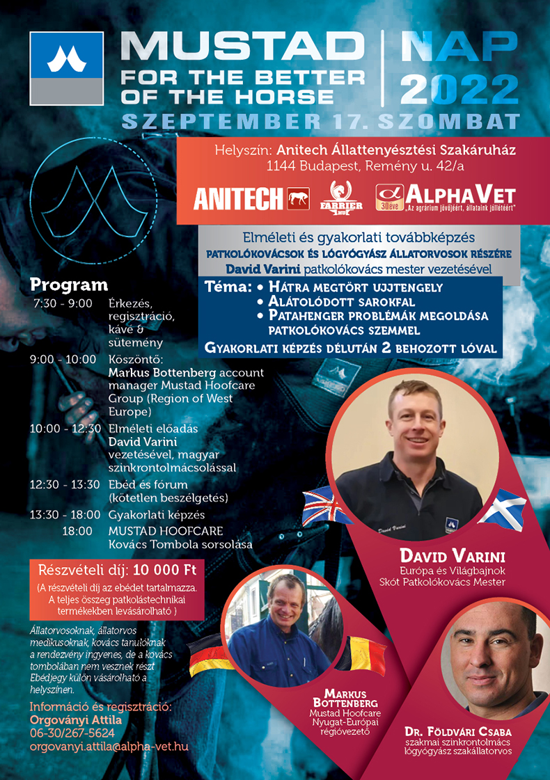 - 9:00 – 10:00 Markus Bottenberg (account manager, Mustad Hoofcare group) köszöntője