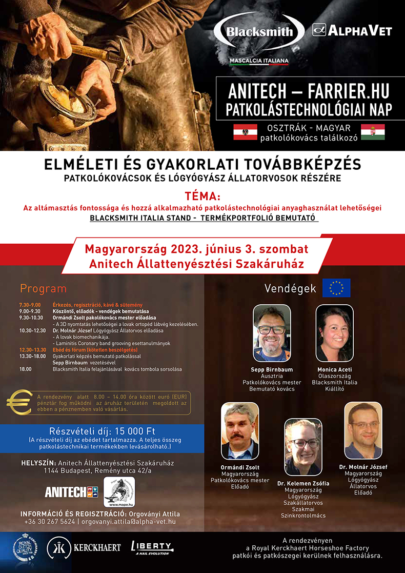 A részvételi díj 15 000 Ft, ami az ebédet tartalmazza. A teljes összeg patkolástechnikai termékekben levásárolható.)
